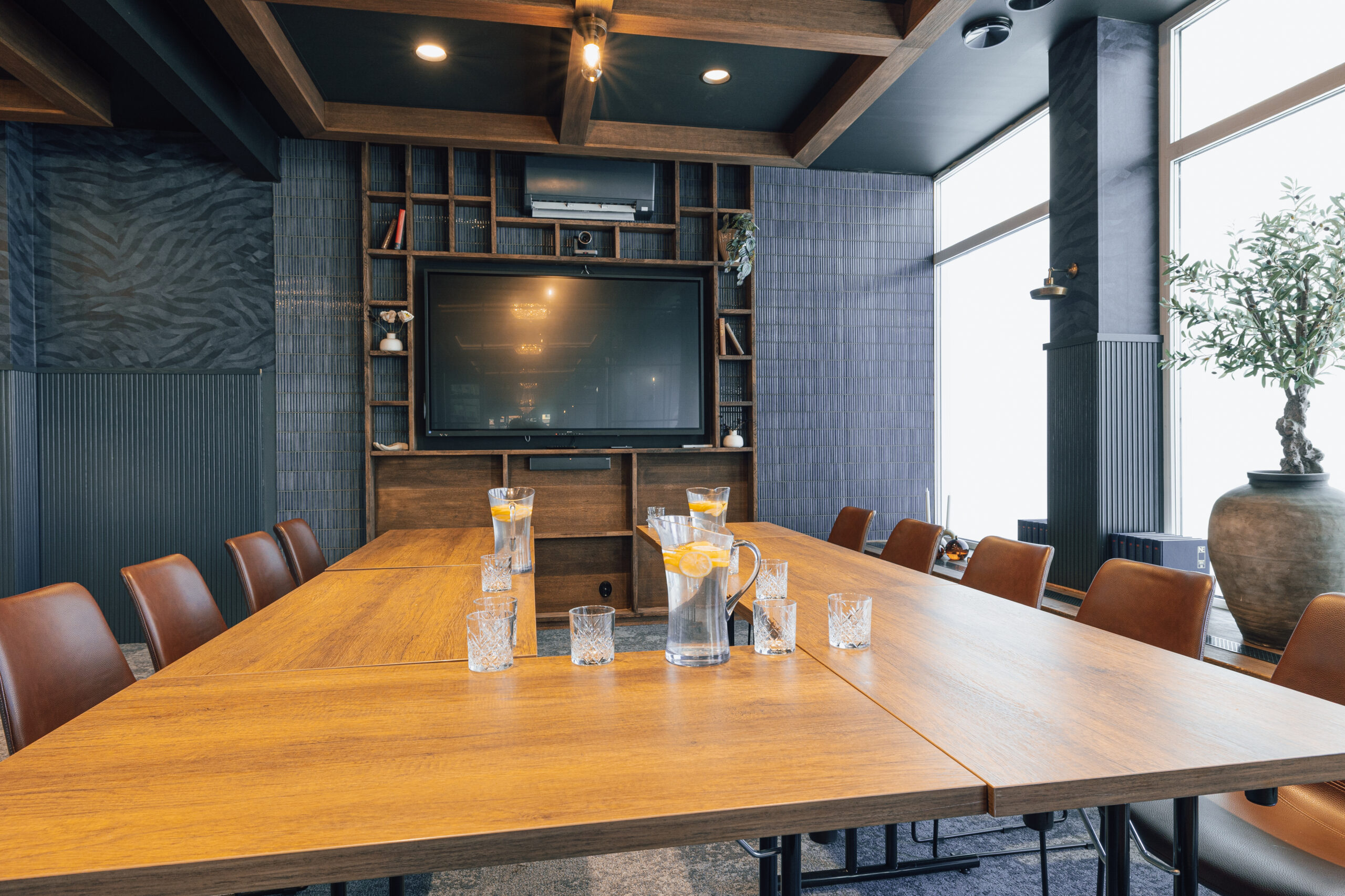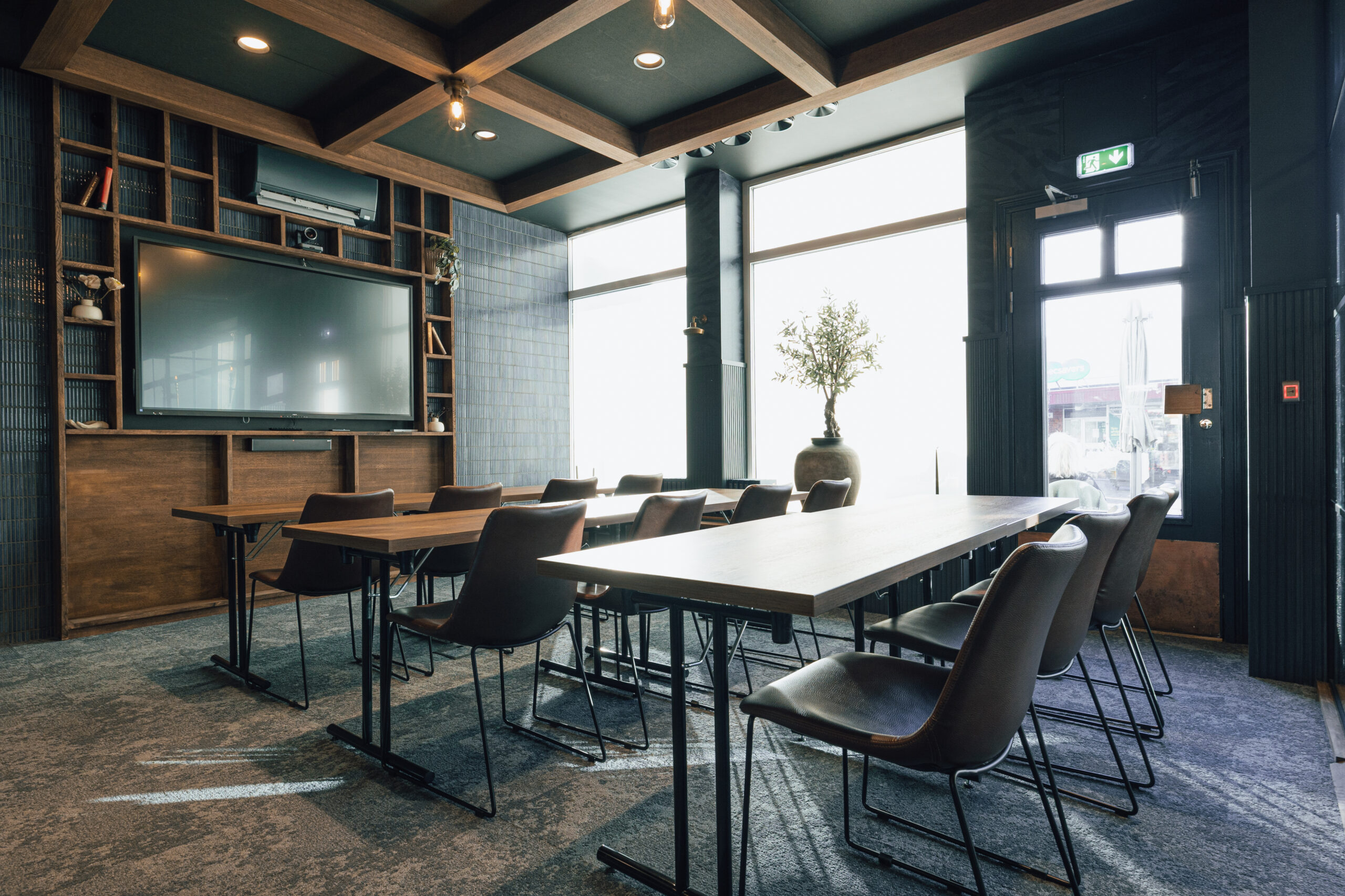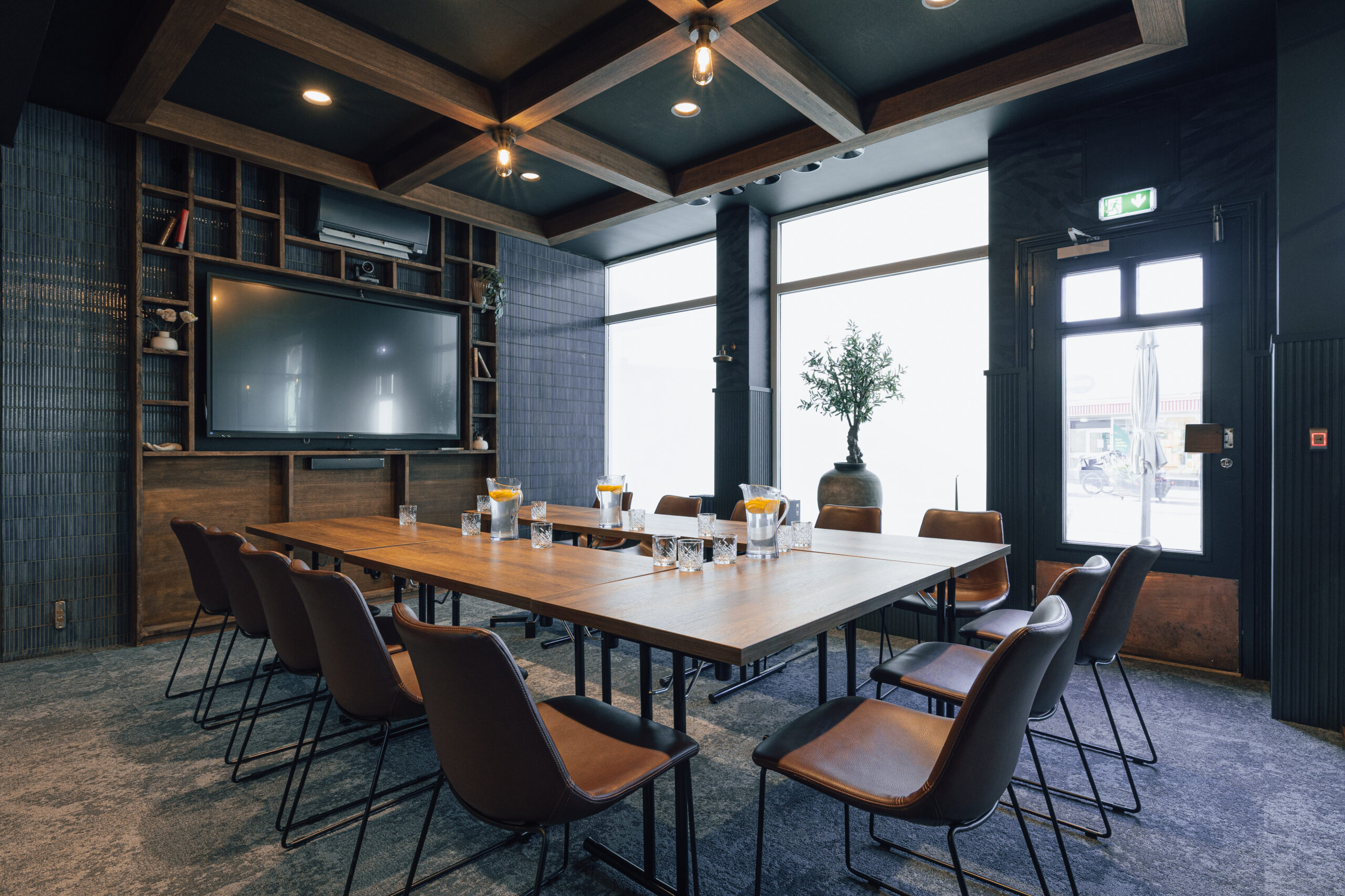 Konferensrum Prinsen är ett ljust och mysigt konferensrum om ca 20 kvm med upp till 20 sittplatser perfekt – för styrelsemötet, ledningsgruppen eller den mindre utbildningen. Rummet har väldigt fin konferensutrustning i form av en 75″ TV med touch som även är möjlig att använda som whiteboardtavla, inbyggd ljudsystem samt kamera och mikrofon för videomöten. Blädderblock finns tillgängligt. Det går att möblera på flera sätt: