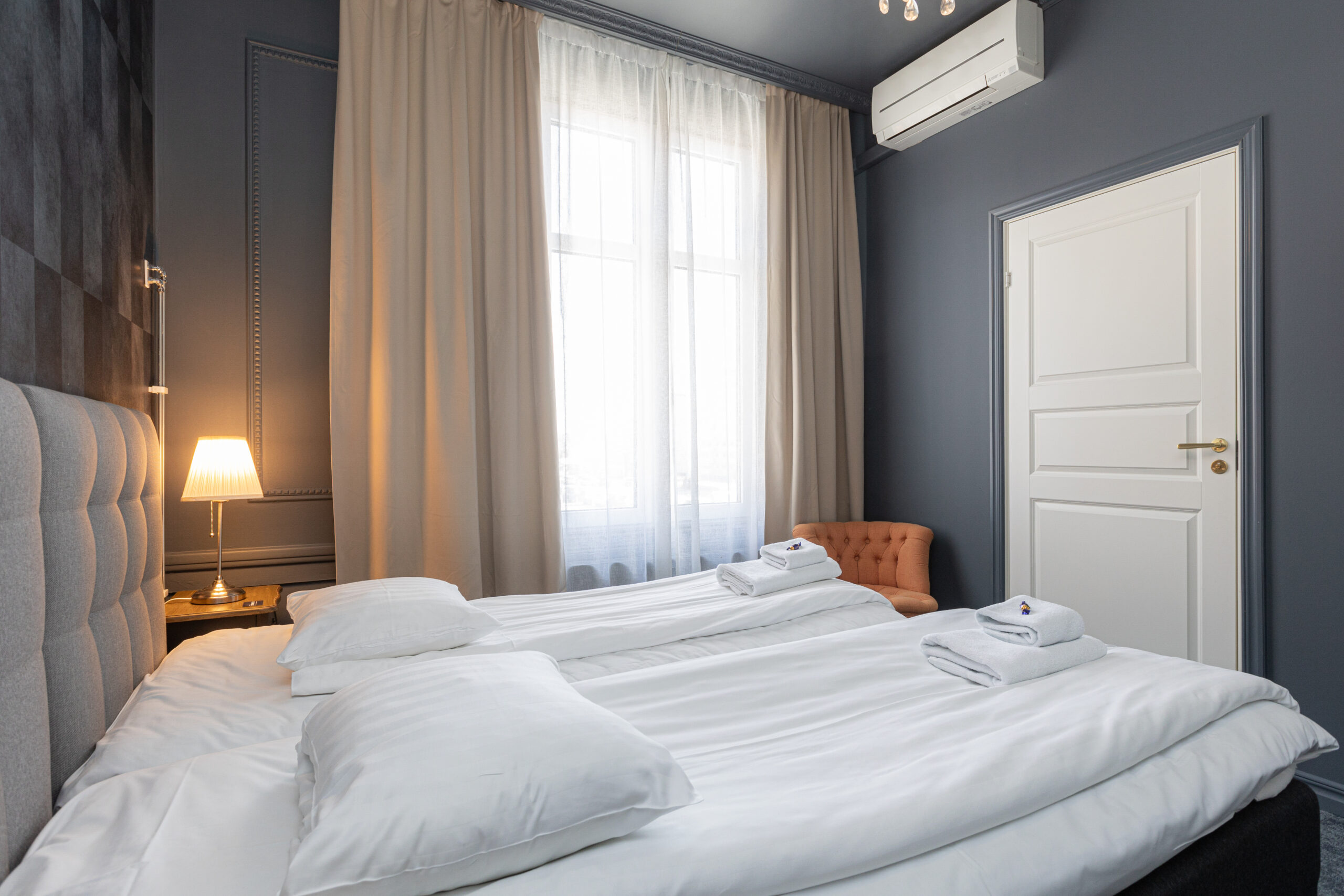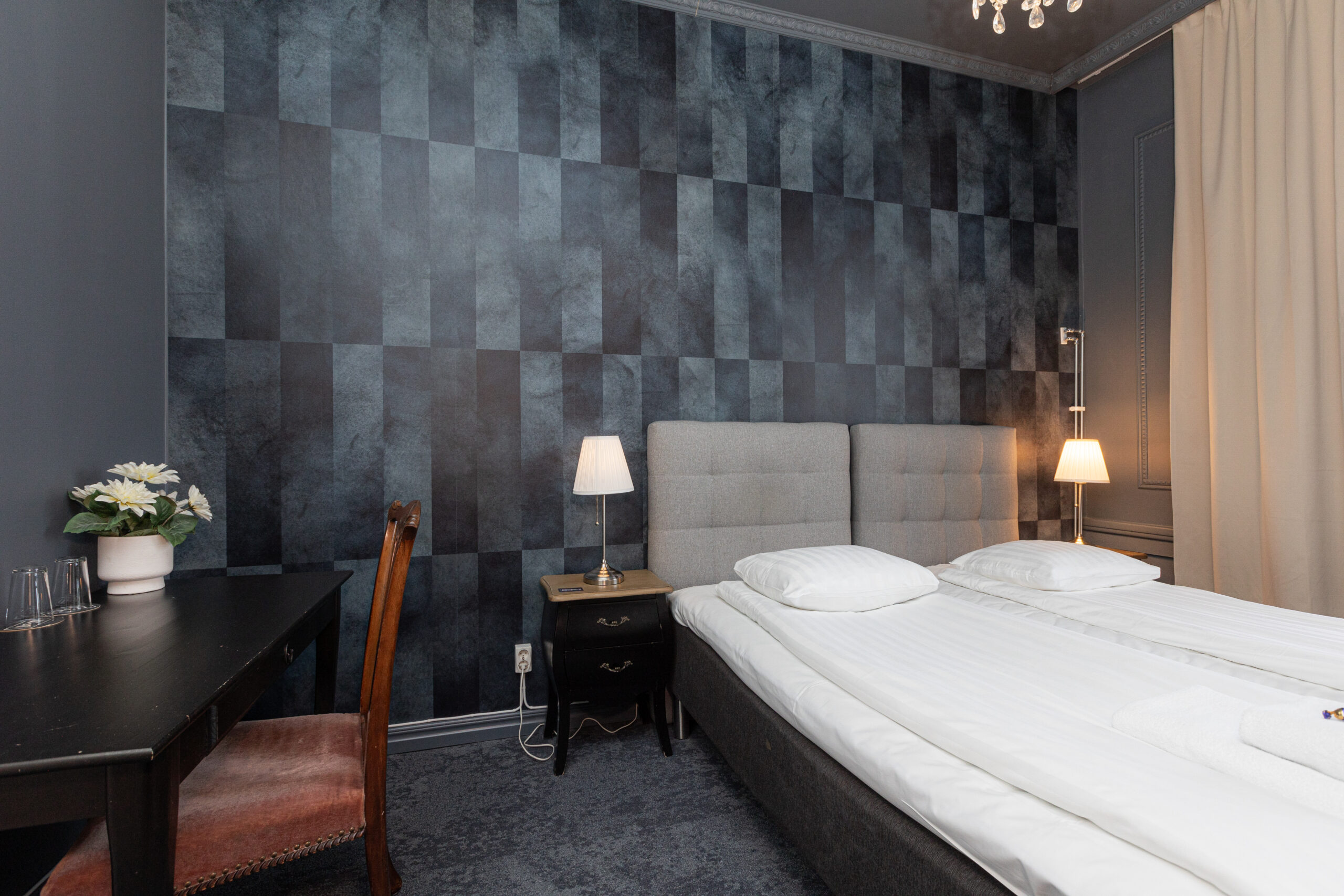 Våra dubbelrum med delat badrum är 15-25 kvm stora och har genomgående hög standard. Rummen är stora och rymliga med högt till tak och härlig atmosfär. Alla rum är utrustade med 2×90 cm säng, TV, skrivbord och sittmöbler.