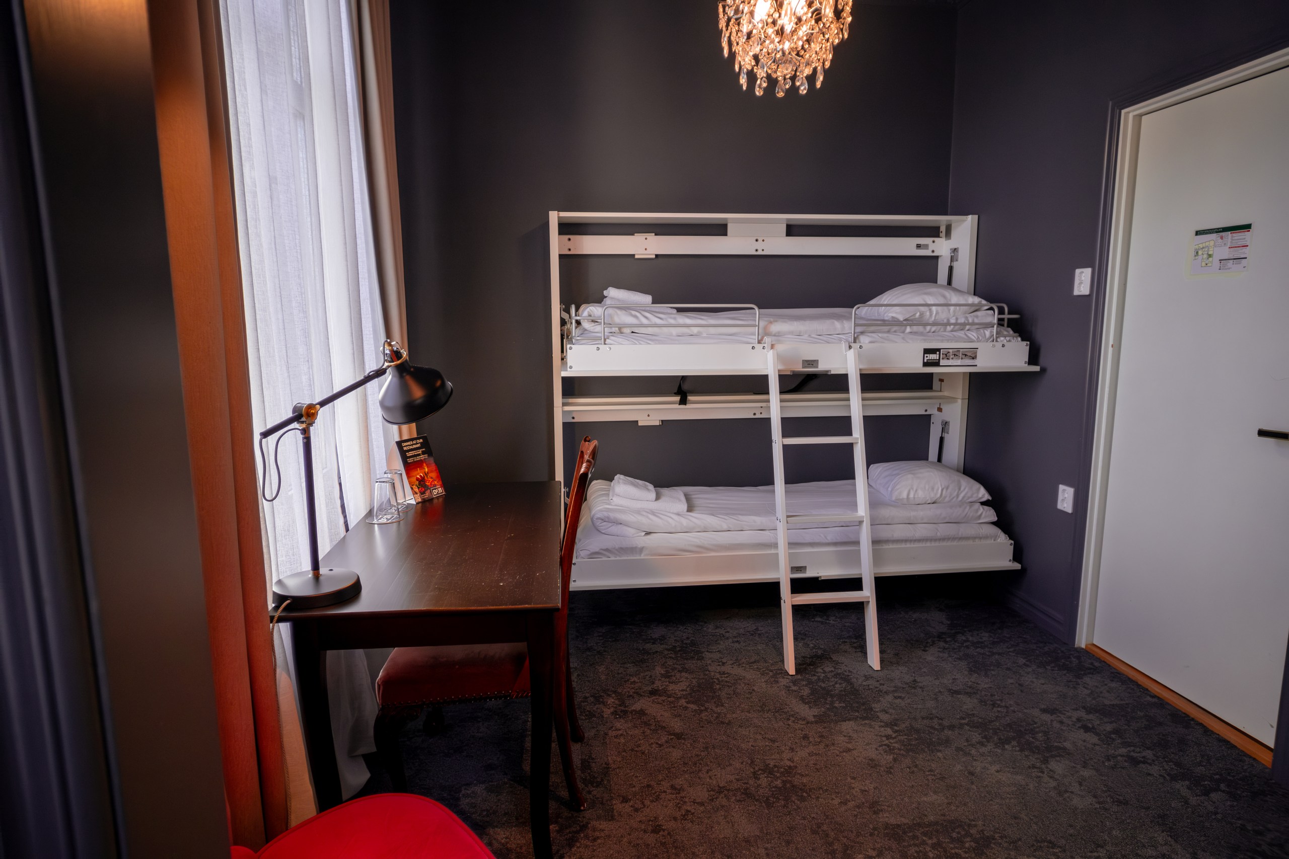 Våra familjerum är cirka 25 kvm och har högt i tak och en härlig, mysig atmosfär. Rummet är utrustat med en 180cm säng och en våningssäng alternativt två extrabäddar. Rummen har även TV, skrivbord och sittplatser.